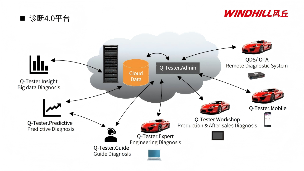 诊断4.0平台由云平台与终端组成,采用开放标准及模块化设计,覆盖产品开发、生产、售后全生命周期,支持大数据分析、预测性诊断、智能引导诊断等。