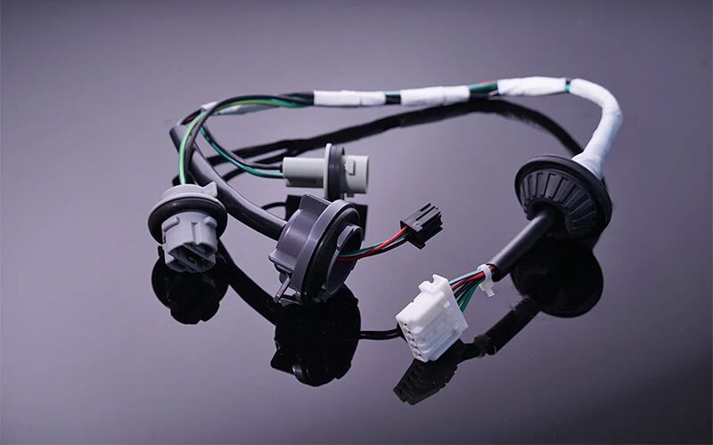 车灯线束是指汽车灯光系统中连接车灯和电源的电缆和连接器的集合体,主要用于将车辆电池或发电机产生的电能传递到车灯中,使车灯发光,同时还能控制车灯的亮度、模式和方向。通常由电源线、控制线、信号线、搭铁线以及接插件、端子、护套等组成。电源线为灯光设备提供电能,控制线传输灯光控制单元的信号,信号线实现灯光的远程控制等功能,搭铁线连接车辆金属部件以确保电路正常工作。 可分为前大灯线束和后尾灯线束。前大灯线束主要连接前大灯、转向灯等,后尾灯线束则连接后尾灯、制动灯、倒车灯等。